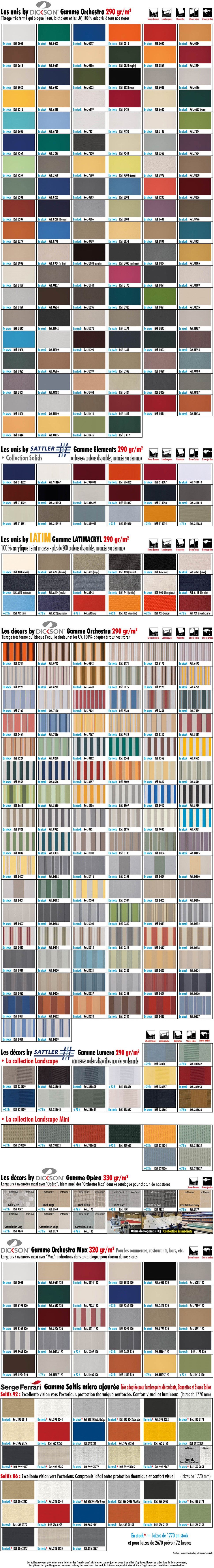 • toile 100% acrylique sélection Dickson Orchestra, traitement spécial Store antisalissures et imperméabilisant intégré
